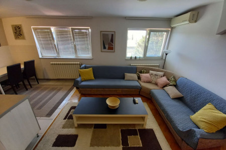 Apartment Raven 1 is located in Belgrade, a Čukarica municipality in Krste Sretenovica 10. The apartment is positioned in a quiet part, suitable for family and vacation, near the park on Beli Vode (which is considered the largest in Belgrade). The apartment is on the top, third floor of a residential building. The structure of the apartment is two bedrooms and covers 48m2. The apartment contains a living room connected to the kitchen, a dining room, a bedroom with a double bed and a fully equipped bathroom. Accompanying content in the apartment consists of a TV in the bedroom and living room, WI-FI, hair dryer, air conditioning, washing machine and complete dining utensils. Parking is nearby and is free of charge.