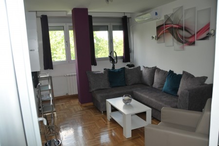 Apartments Belgrade - Apartment Relax Aleksandra is located in New Belgrade on the street Pariske Komune. It is located in a quiet place in the center of New Belgrade. In the vicinity is TC Ušće, restaurants, cafes, markets. The apartment is located on the 5th floor of the building with an elevator. It is modernly furnished for a comfortable stay of up to 4 people. It consists of an entrance hall, living room, bedroom, bathroom and kitchen. In the living room there is a corner sofa that is folded into a comfortable bed for two people, and there is also a room bike. The bedroom has a large double bed with Schlaraffia mattress. The kitchen is fully equipped with all small home appliances for storing food. The bathroom has a shower and is equipped with new modern bathrooms. The accompanying content has Wifi, LCD TV, air conditioning, central heating, hairdryer, washing machine, dryer for drying. Apartment daily has a large parking lot in front of the building which is free.