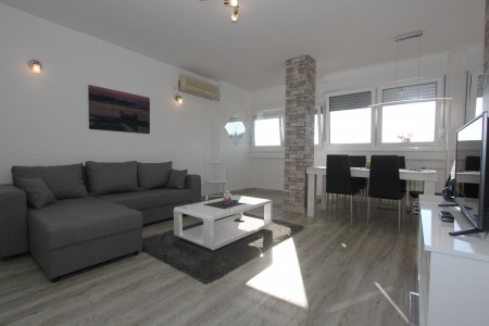 Apartment Spektra is located in New Belgrade, at Milutina Milankovica Street, on the 5th floor, near the shopping center Delta City, Belgrade Arena, a 10-minute drive from the city center. The apartment is very bright, cozy and comfortable and consists of a living room with dining room, bedroom with French bed, kitchen, bathroom, hallway and large terrace. It is equipped with modern furniture, CG, all necessary appliances (flat-panel dishes, built-in oven, washing machine, dishwasher, air conditioning ...), Wi-Fi, cable TV. The apartment is ideal for 2 people and can accommodate up to 4 people (2 + 2). The building has an elevator and there is a public parking lot in front of the building.