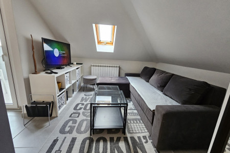 Apartment Top Dedinje is located in Dedinje, Mihaila Avramovića Street 40, in an excellent location well connected to the center and all important roads. The accommodation is located in the attic, it has an area of 69m2 and is designed for up to 4 people. The apartment consists of a living room with a kitchen and dining room, a bedroom with a double bed, a spacious terrace with a wonderful view, and a bathroom with a shower cabin and a washing machine. In the living room there is a sofa that can be extended for additional guests. Free Wi-Fi internet, clean bed linen and clean towels, air conditioning, LCD TV with channels are at guests' disposal. VMA hospital and KBC are nearby. Free parking is provided in front of the building. Welcome!