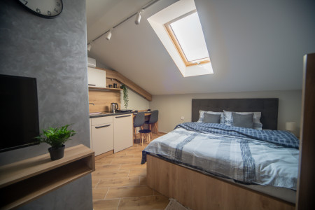 The Manoir apartment complex consists of 8 fully equipped apartments for both short and long stays. The apartments are located in the city center, in Svetozara Miletića Street, just a few minutes walk from the Ruthenian Greek Catholic Cathedral and the main promenade. In particular, the Manoir S4 apartment is located on the first floor of the building. It is a studio apartment that spreads over 25 m2, and can accommodate a maximum of 3 people. The apartment has a large double bed and sofa bed, small but functional kitchen, table with two chairs, cable TV, Wi-Fi, underfloor heating and air conditioning. The bathroom is equipped with a shower, hairdryer and new toilets. We expect your!