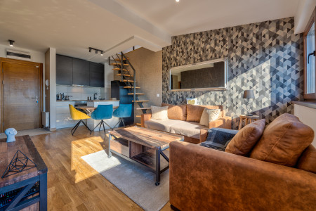 Apartment Daria Lux 44 is located in Breza Street, on the fourth floor of a building with an elevator. If you want a quiet holiday in a luxuriously decorated villa, surrounded by pine forests, and yet not far from the center, Villa Daria Lux is an ideal accommodation. The apartment is suitable for 6 people, if you come with family or friends you can comfortably stay. It consists of a living room that contains a sofa bed, below is a fully equipped kitchen. The separate bedroom has a comfortable double bed and a wardrobe. Daria Lux 44 has two levels, on the first floor there is a second bedroom with a double bed, as well as a separate living area with armchairs and a TV. The bathroom contains a shower, washing machine, tumble dryer. Modern and luxuriously decorated apartment has internet, heating and free parking space in front of the building.