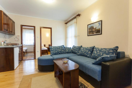 Apartment Zlatiborski biser 6 is located at 25 Jovanke Jeftanović Street, Đurkovac, 200m from the center. It is located not far from the center, it is ideal for 4 people. It consists of a living room with a kitchen and a dining area, 2 bedrooms, one with a double bed and the other with two separate single beds, as well as a large terrace for relaxation. The kitchen is fully equipped. The apartment also contains WiFi. For guests who come with their own vehicle, a free parking space is provided in front of the villa. The exclusive area, as well as the peace and privacy we offer you, represent an ideal place for your vacation. Welcome!