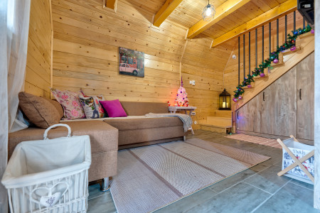 Luxury Helena Log Cabin is located 5 kilometers from the center of Zlatibor in Smiljanski Zakosi. If you want a quiet holiday with your family, this is an ideal accommodation. It contains all the necessary elements for a comfortable stay for up to 4 people. The ground floor has a living room with a comfortable sofa that extends, below is a fully equipped kitchen. The log cabin is made of natural materials in brown tones with pink details, so you will enjoy the pleasant ambience and modern interior. Upstairs is a large double bed and closet, from the bedroom there is an exit to the terrace with a view of nature that surrounds the log cabin. The bathroom contains brand new toilets and a shower. There is also a secured parking space for all log cabin guests. Welcome!
