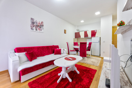 Apartment Elsa S16 is located in Svetogorska Street on Zlatibor, on the first floor of Villa Elsa, with an elevator. The apartment has two bedrooms, very pleasant ambience, modern equipment and can accommodate up to 4 people. Every detail in the apartment has been carefully selected to make your stay in the apartment as pleasant as possible. The living room has a comfortable sofa bed, with kitchen and dining area. The bedroom has a wardrobe and a double bed. The bathroom has a shower, and has a terrace with beautiful views. It has heating, wifi, TV, iron, hair dryer, baby cot, bed linen and towels. The stay of pets is on REQUEST. If you are looking for quality accommodation in the center of Zlatibor, apartment Elsa S16 is a great option. It is located near the lake, King's Square and other entertainment facilities of this tourist destination. Parking is free in front of the building.