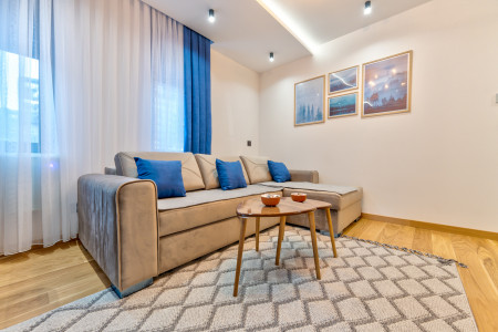 Apartment Silver sky is located in the newly built building Srebrni vrhovi, 450m from Kraljevi Square and the lake. It is located on the first floor of the building and is intended for a pleasant stay for up to 4 people. Silver sky is a modernly equipped apartment with a living room with a comfortable sofa bed and a dining area. The kitchen is functional and fully equipped with an induction stove, refrigerator, coffee maker and blender. The separate bedroom has a large double bed, an LCD TV and a wardrobe. The bathroom is equipped with modern sanitary ware, a shower cabin and a washing machine. The apartment is located in an attractive location, just a few minutes' easy walk to all locations on Zlatibor and is ideal for longer and shorter stays. Free Wi-Fi, cable channels and a terrace are available to guests. An additional convenience is the parking space in front of the building, for guests who come with their own transport.
