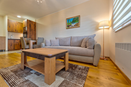 Spa 34 is a two bedroom apartment, located in Krfska Street on Zlatibor. It is located in the center of Zlatibor, not far from King's Square. Two bedroom apartment, has everything you need for a comfortable stay for up to 4 people. Spa 34 has a living room with kitchen and dining area, bedroom, bathroom and terrace. The bedroom contains a large double bed, while the living room is equipped with a sofa bed. The kitchen is fully equipped with modern elements. In addition, the apartment has a spacious terrace with a beautiful view. The spa center is available to all guests free of charge, according to the principle of scheduling an appointment upon arrival. Guests can use the spa on their own at the booked time. The price of the apartment for one night is 50 euros. There is also free parking in front of the building.