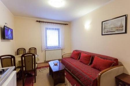 Apartment Zlatiborski biser 7 is located at 25 Jovanke Jeftanović Street, Đurkovac, 200m from the center. The apartment is suitable for up to 4 people. It consists of a living room with a kitchen and a dining area, a bedroom with a double bed. The kitchen is fully equipped. In the living room there is also a folding bed where two more people can sleep, as well as a TV. Wi-Fi as well as a free parking space in front of the villa where the apartment is located are available to the guests. With our hospitality, traditionally known for this region, we will make you feel comfortable and want to come back to us again. If you want an apartment in a quiet area, yet in the center of Zlatibor, then this apartment is ideal for you. Welcome!