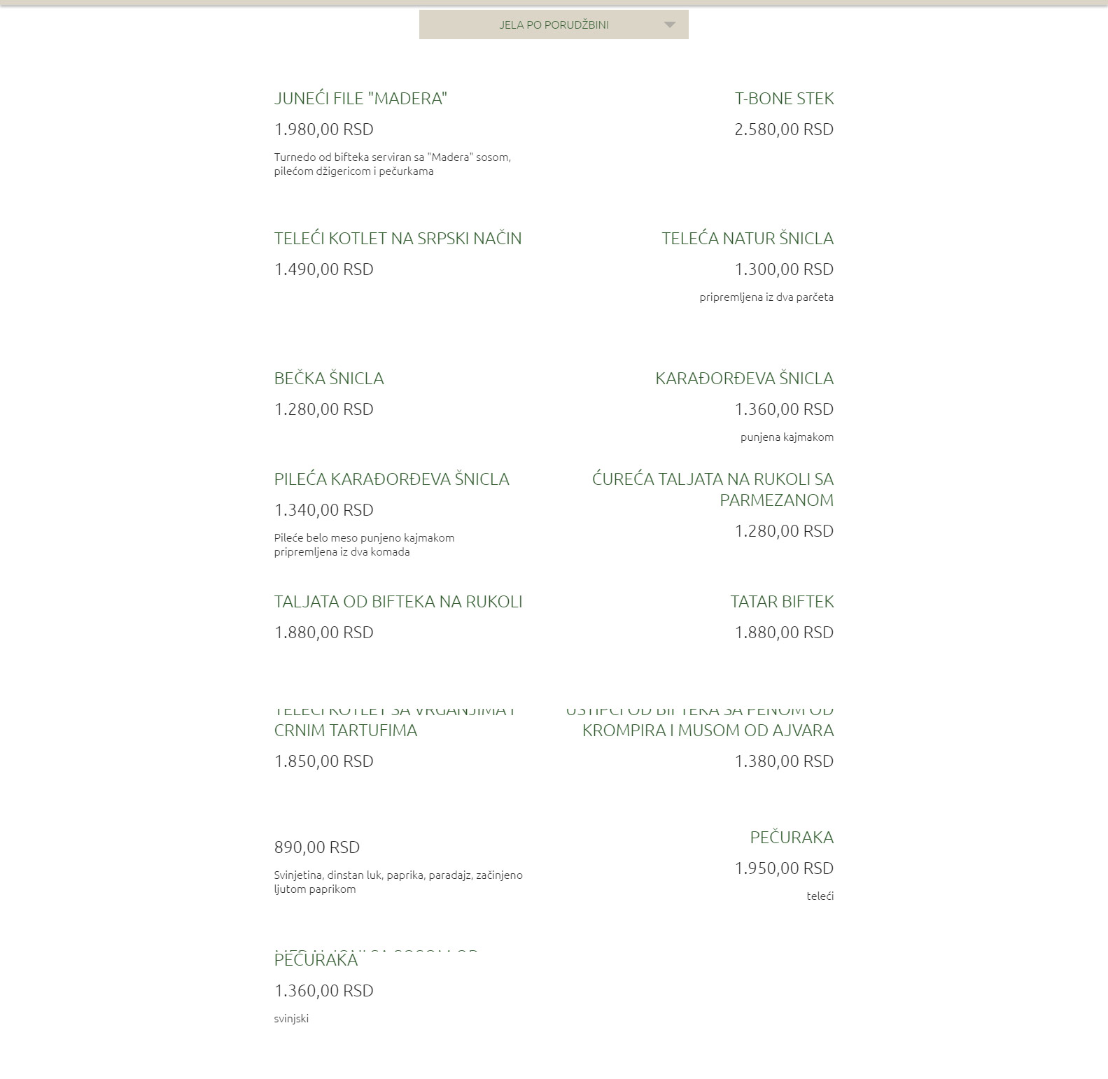 The story goes that the restaurant got its name as one of the regular guests brought a great wine from the Portuguese island of Madeira. Belgrade's bohemians, famous artists and journalists, which have been popularly called "maderaši", gethered in our restaurant. Among them are Dr Aca Obradović, Predrag Milojević, Ljuba Tadić, Miroslav Radojčić, Den Tana, Miljan Miljanić, Slava Đukic, Ljubiša Vukadinović, Dragoslav Šekularac and others.