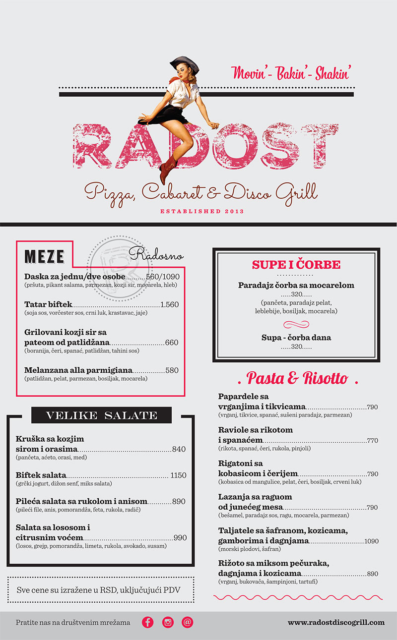 “Radost” is an unavoidable pit stop to all the “night owls” that enjoy a classical napoli style pizza, american style burger and any other late night snack you can think of!