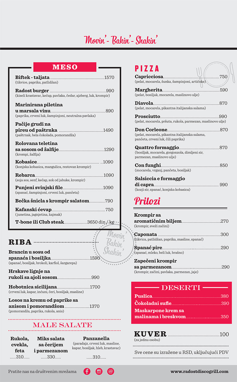 From breakfast, lunch to dinner and comfort food at the wee hours of the night, “Radost” Disco grill is there for you! And, there is more, all of that while listening to the new jazz, disco top hits and hymns of the new wave and electronica of the eighties. If you translate Radost it literally means happiness and that is what “Radost” is all about, their kind staff, fast and reliable service, specialities and beverages will make you happy, and the sounds of the music played will make you dance.