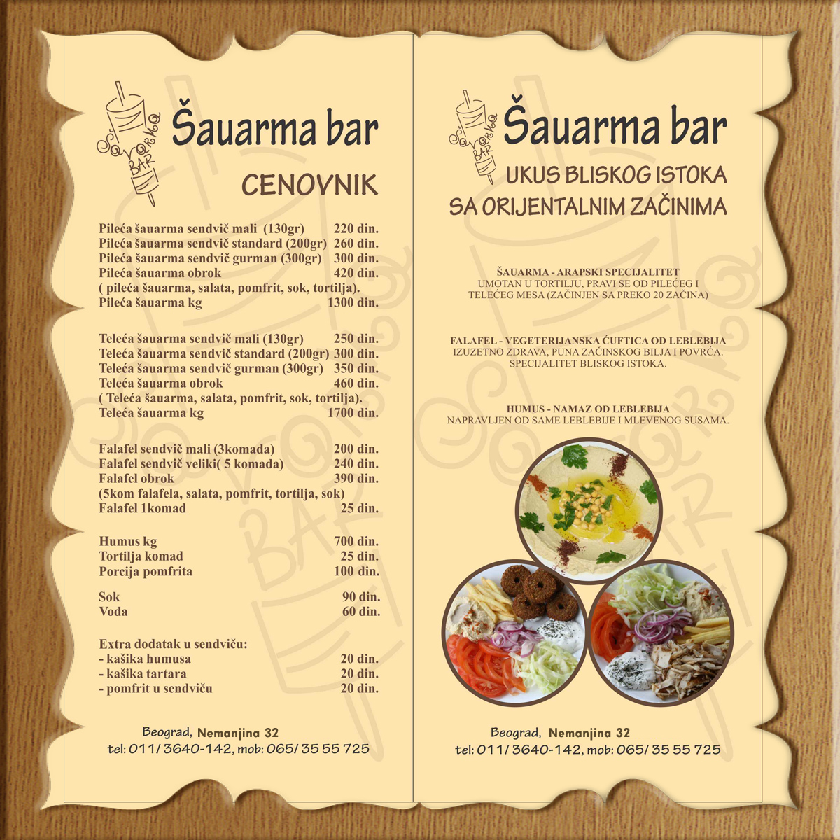 “Sauarma bar” restaurant was opened in Belgrade five years ago, and it was one of the first fast food restaurants that offered a different taste, a taste of arabian food. The authentic recipes of sauarma, humus and falafes, Syrian, Palestine, Lebanese and Yordan food has taken over Belgrade. Besides the new, unique and different menu it offered, it caught the customers attention because of its high quality service and guaranteed, excellent taste.