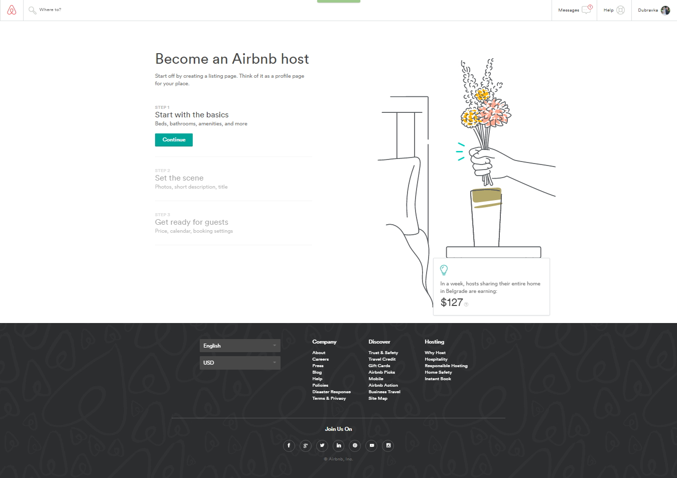 Idite na Airbnb-evu internet stranicu, kliknite na “Become a Host” u gornjem desnom uglu.