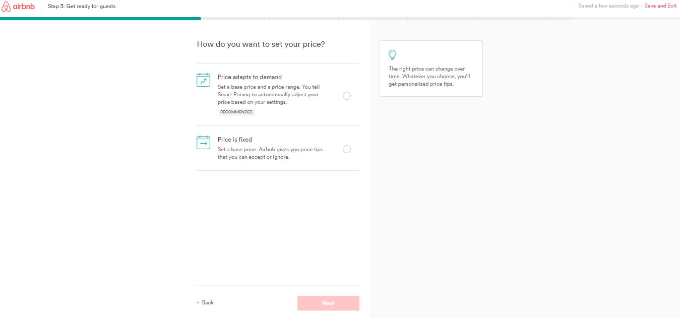 Ovde je potrebno da označite na koji način želite da odredite cenu. Imate dve ponuđene opcije: "Price adapts to demand" (cena se menja u odnosu na potražnju) ili "Price is fixed" (cena je fiksna).