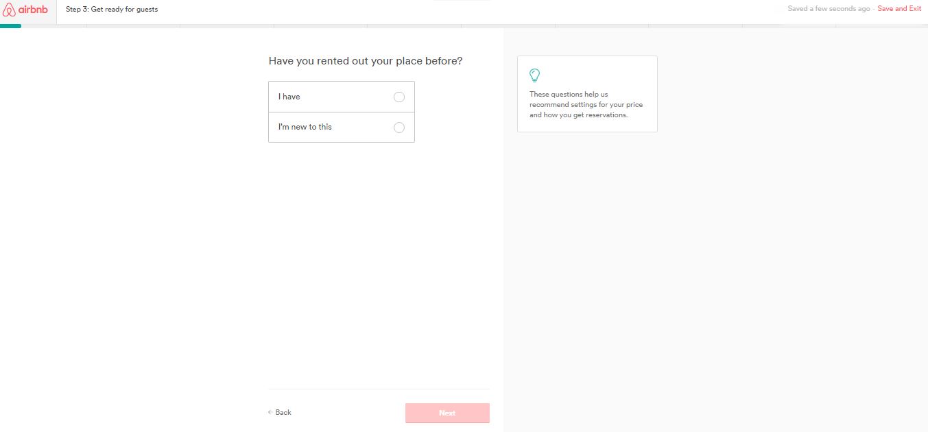 Prvo što je potrebno da označite jeste da li ste već iznajmljivali smeštaj ili ste novi u ovome.