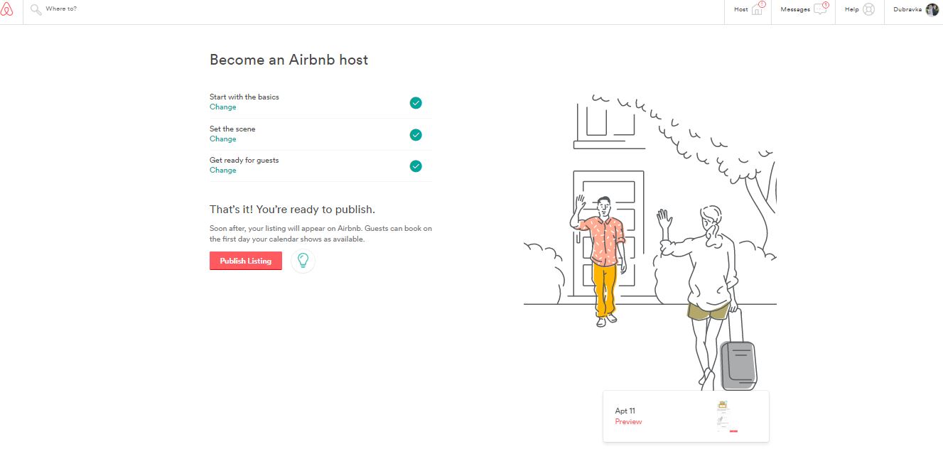 U ovom trenutku možete da se vratite na svaki od prethodnih koraka i izmenite neko od podešavanja. Ukoliko ste zadovoljni unetim podešavanjima vreme je da oglasite svoj apartman što radite pritiskom na dugme „Publish Listing“.