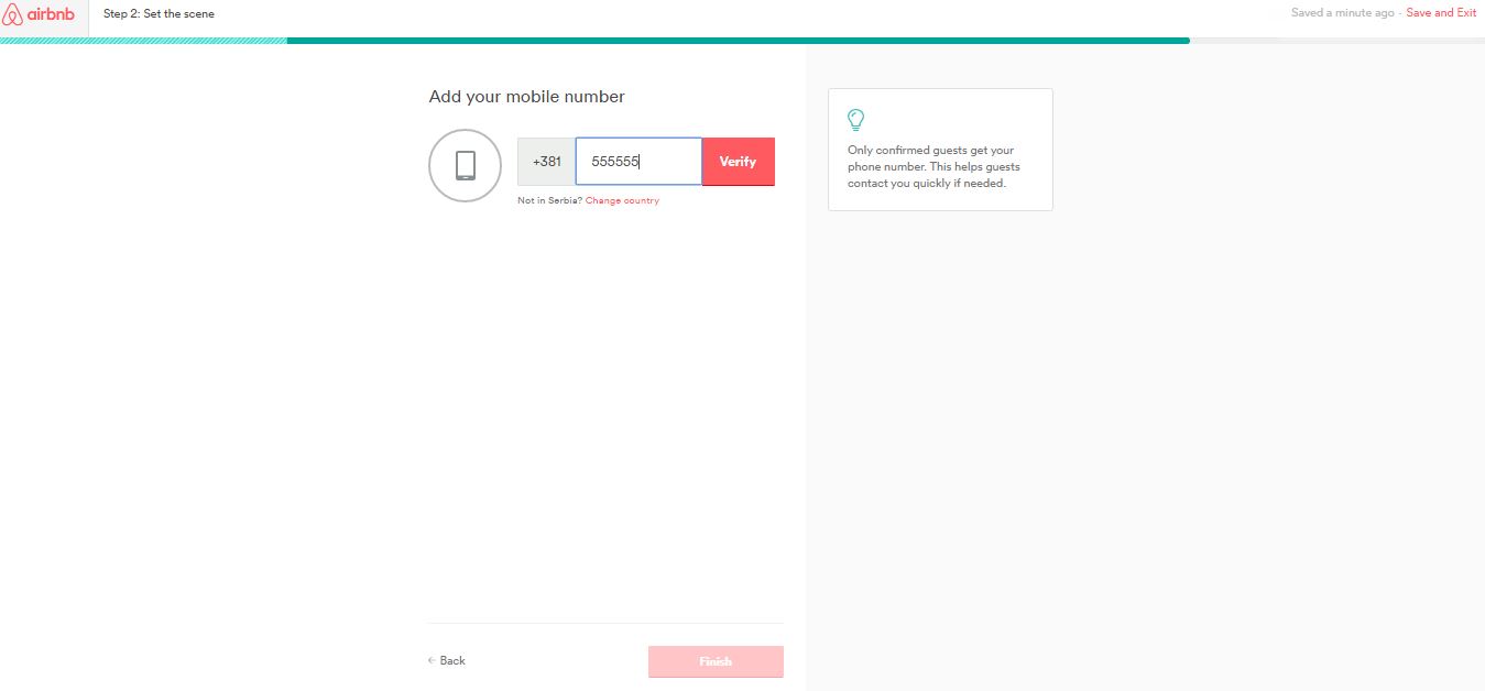 Kada prvi put postavljate oglas biće potrebno da unesete broj telefona i verifikujete ga. Ovo Vam neće tražiti ponovo ukoliko budete hteli da oglasite još neki apartman.