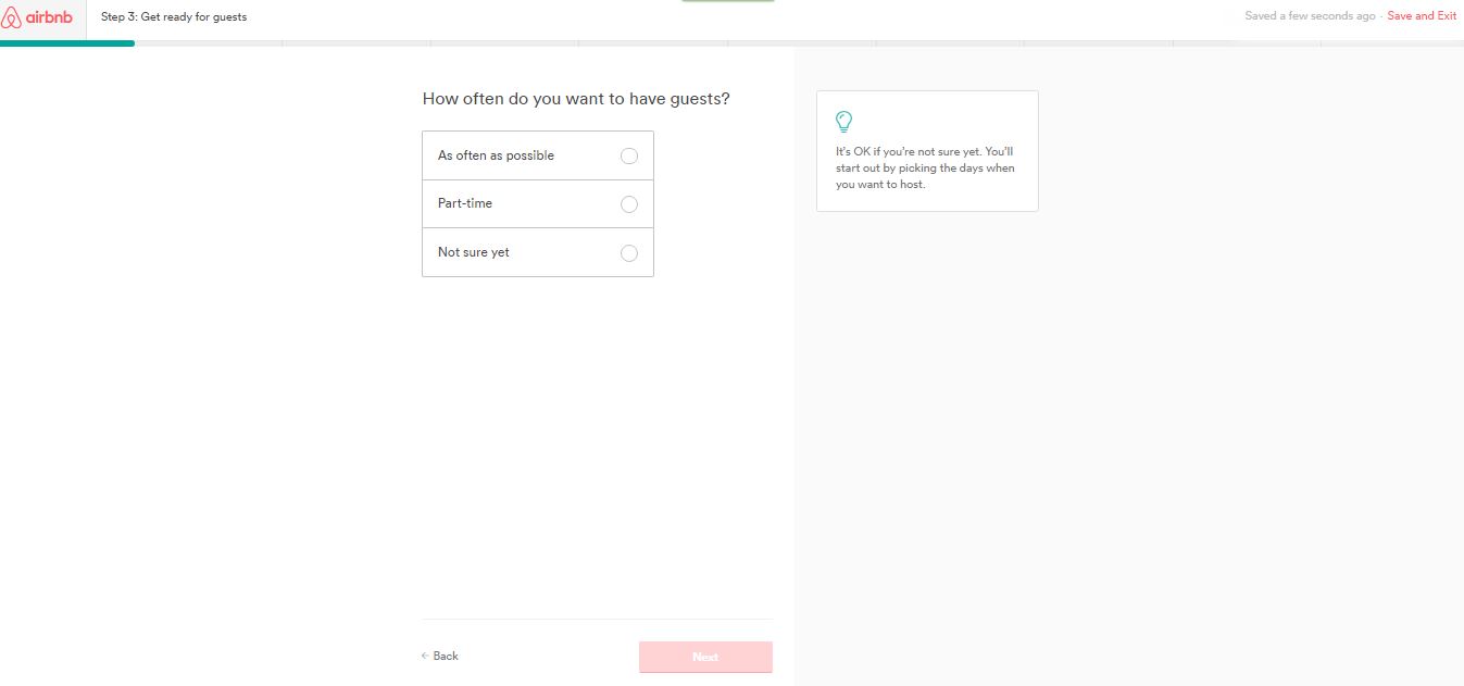 Zatim je potrebno da označite koliko često želite da imate goste (što je češće moguće, samo u određenom periodu, ili niste još uvek sigurni), označite opciju koja Vam najviše odgovara.