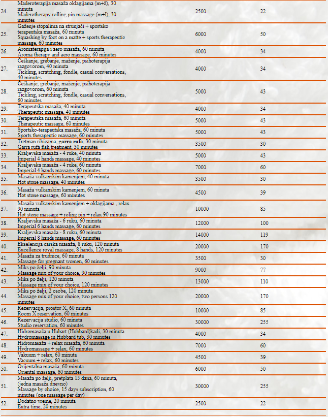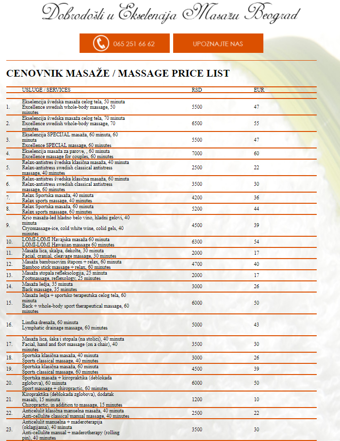 Dobrodošli na sajt Excellence massage Belgrade u nadi da ćete dobiti potpunu sliku o našoj ponudi vezanoj za profesionalnu masažu i druge sadržaje sa ciljem relaksacije i psiho-fizičkog odmora. Tretmani su namenjeni svim starosnim grupama i za oba pola.Studio se sastoji od pet prostorija. Samu masažu prate i drugi sadržaji : fish spa, cak i mogućnost poslovnog sastanka , porodičnog druženja kroy masažu i tretmane. Studio je opremljen savremenom tehnologijom koja koristi WI FI, poseduje sve pomoćne prikljućne uređaje, bežične tastature i daje dodatne mogućnosti za uživanje kroz muziku, spotove..